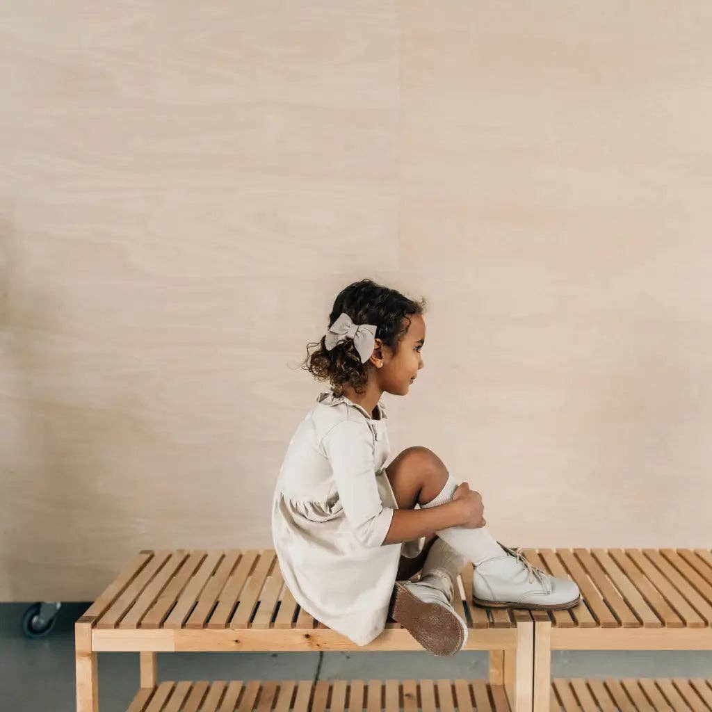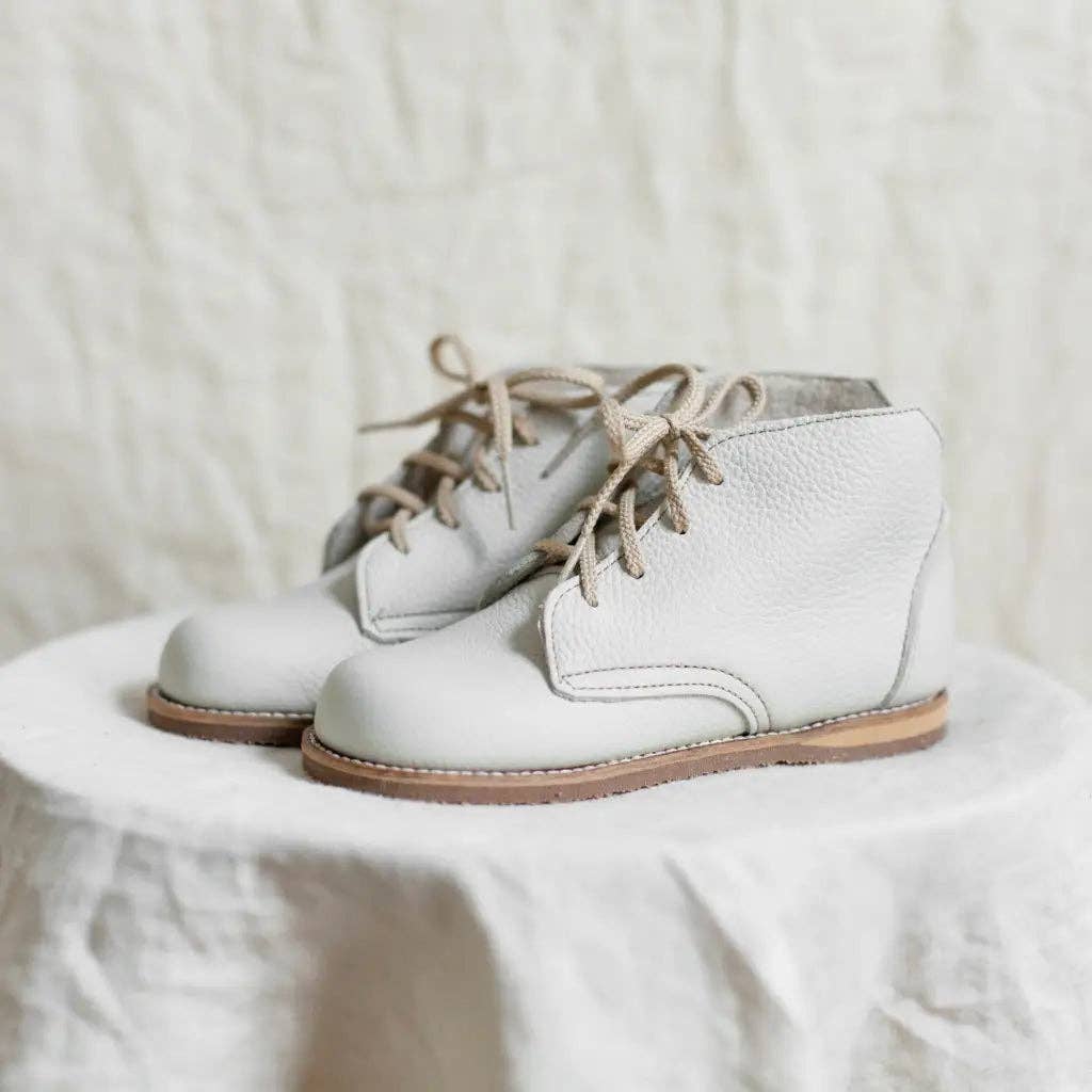 The Fog Milo Boot is made of top grain leather and fully lined in breathable leather to wick away moisture. The sole is made of a durable and flexible rubber, and the structure provides flexible stability without weight to support your little one's early steps. The hand-cut "V" notched out of the back makes slipping them on and off even easier. A favorite for stylish little boys and girls! Bows by: The Little Design Co.